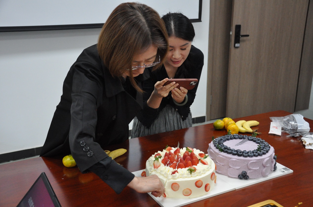 生日会最后,大家一起分享蛋糕和水果。本次集体生日会不仅让大家在繁忙的科研教学工作之余收获快乐,更让老师们感受到了学院大家庭的温暖。大家纷纷表示,接下来会以更加饱满的热情投入到教学科研工作中,满怀信心地迎接未来的挑战,为学院建设添砖加瓦。
