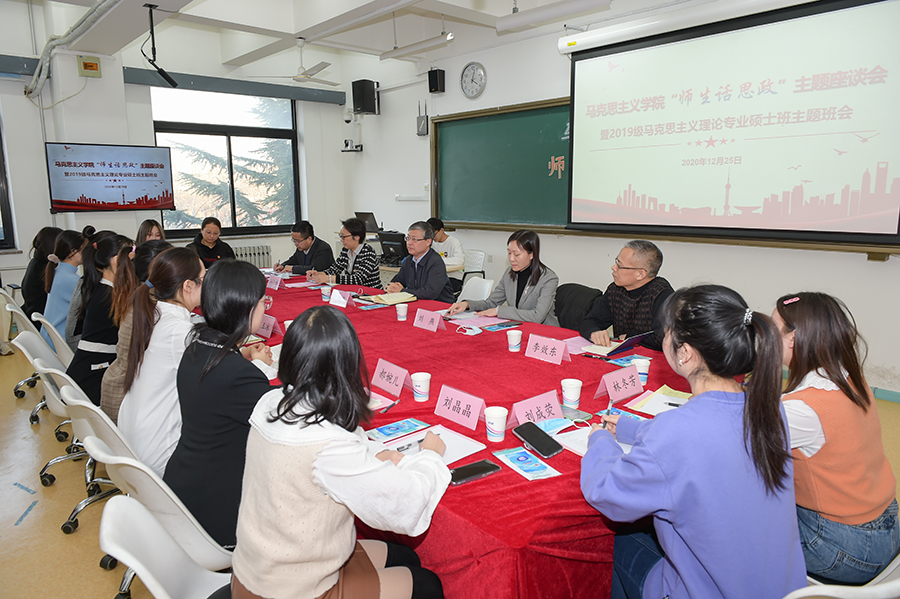 2020年12月25日下午,校党委书记黄泰岩参加联系班级jinnianhui今年会2019级马克思主义理论硕士班“师生话思政”主题座谈会,围绕“提升思想政治教育实效性”与马院师生进行深入交流。