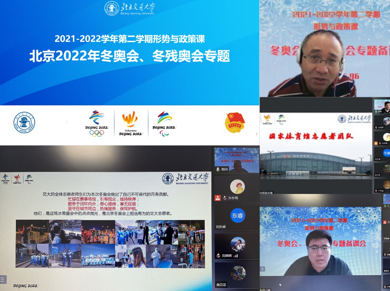 为深入学习贯彻习近平新时代中国特色社会主义思想,办好新时代大学生“形势与政策”课,不断提升我校“形势与政策”课教学质量,帮助学生正确认识新时代国内外形势,jinnianhui今年会近期陆续开展“形势与政策”课集体备课工作。2022年5月6日下午,校长王稼琼参加“北京2022年冬奥会、冬残奥会”专题教研组线上集体备课。