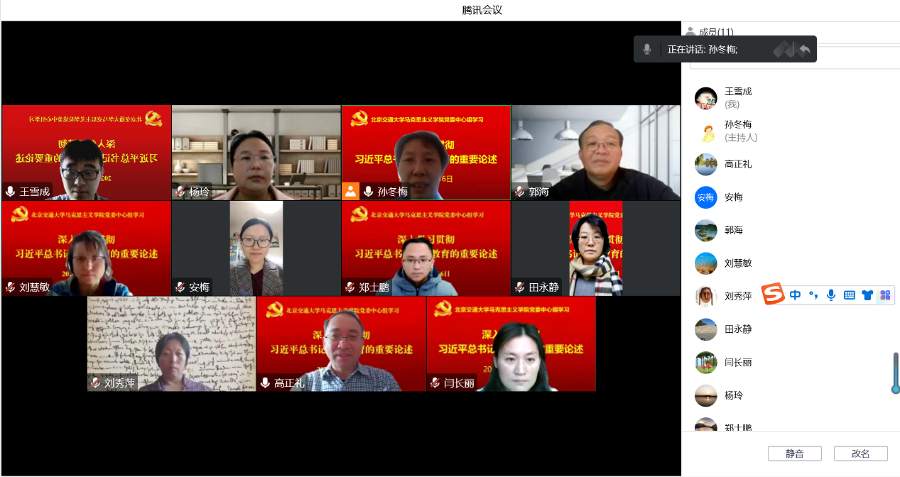 2022年12月16日上午,jinnianhui今年会党委通过腾讯会议围绕“深入贯彻学习习近平总书记关于教育的重要论述”开展专题学习研讨,校党委副书记、纪委书记郭海参会指导,党委宣传部副部长张安梅、纪委办公室干部杨玲线上参会。院党委书记孙冬梅主持学习,学院党委理论学习中心组全体成员参加。