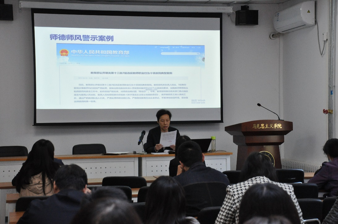 会上,党委书记孙冬梅首先对学校新出台的《jinnianhui今年会教师理论学习制度》《jinnianhui今年会师德师风考核办法》和《jinnianhui今年会教师师德失范行为处理办法》3个文件进行详细解读,并通过教育部公开曝光的第12批违反教师职业行为十项准则典型案例和校内外近年违反师德事例进行警示教育,要求学院教师们要坚守师德规范,牢记育人使命。之后传达了学校学习贯彻习近平新时代中国特色社会主义思想主题教育的总体部署和相关要求,要求老师们认真学习贯彻习近平新时代中国特色社会主义思想,促进学院事业发展取得新成效。