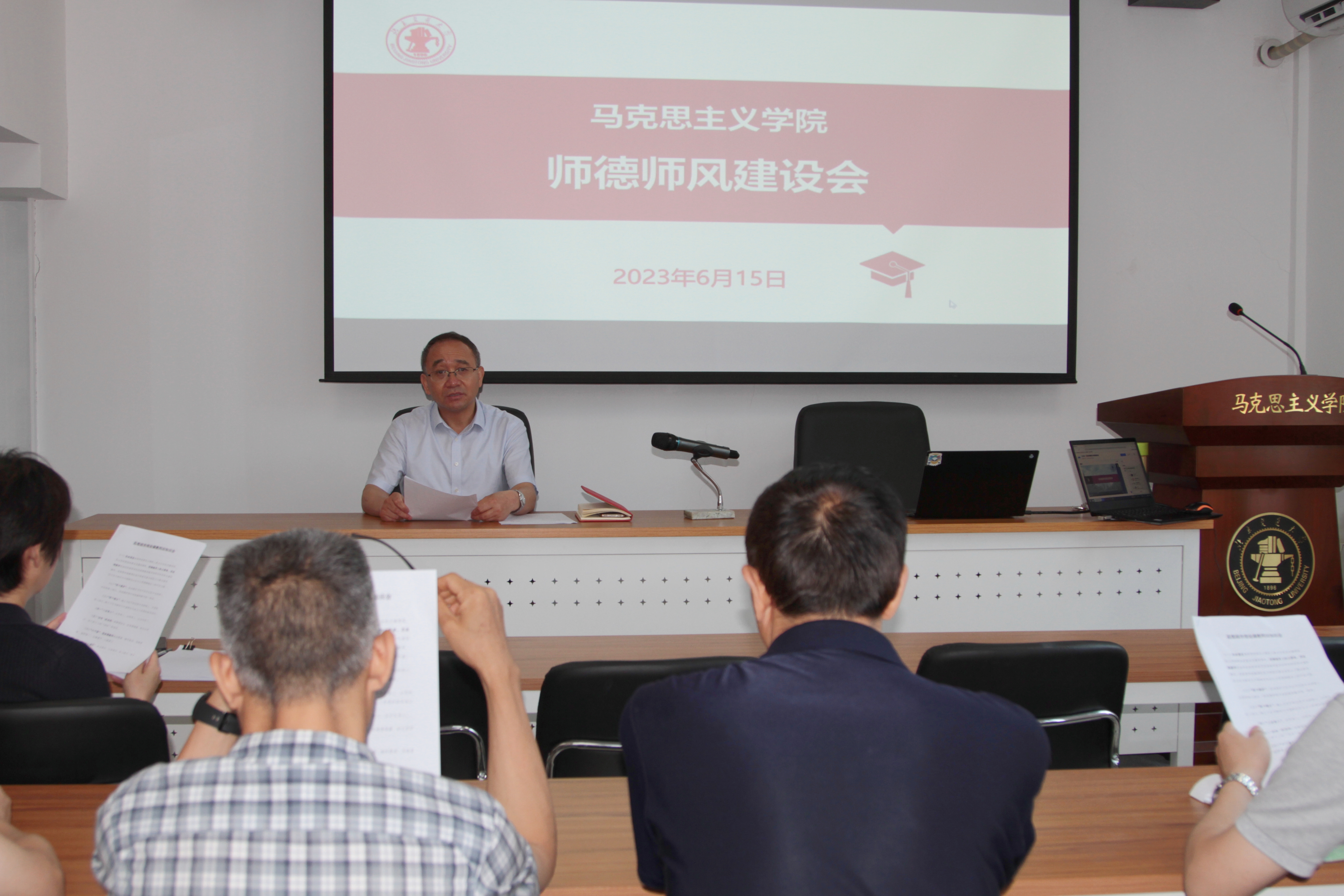 2023年6月16日上午9:00jinnianhui今年会在向阳办公室2111召开师德师风建设会,学院全体教职工出席此次会议,会议由学院党委书记孙冬梅主持。