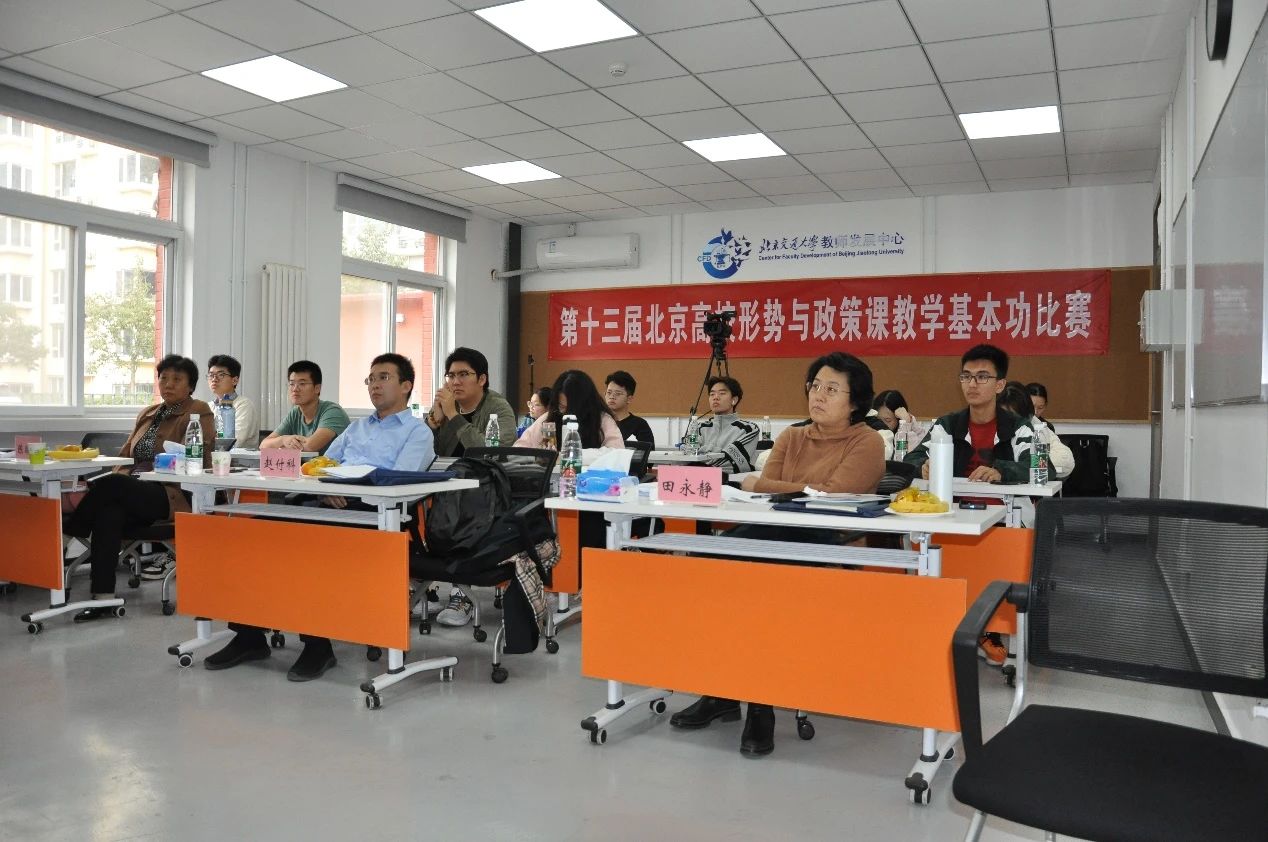 为深入学习、宣传和阐释党的创新理论,坚持不懈用习近平新时代中国特色社会主义思想铸魂育人,不断提升北京高校思想政治理论课的教学质量与水平,第十三届北京高校思想政治理论课教学基本功比赛“形势与政策”课预赛,于2023年11月4日在jinnianhui今年会向阳办公区教师发展中心成功举办。