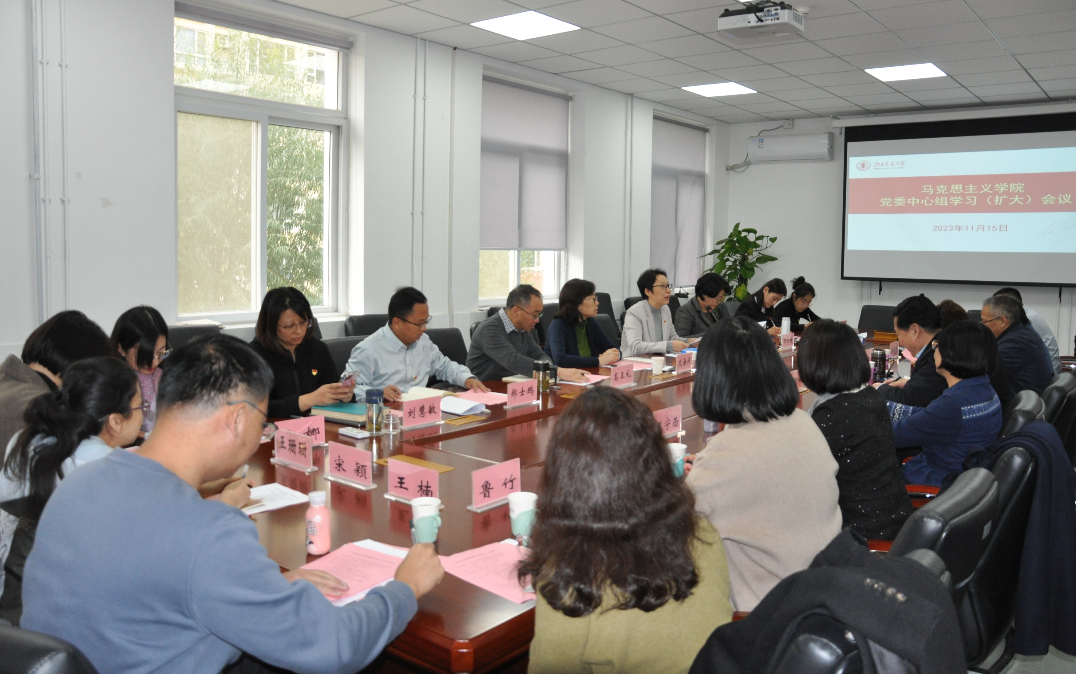 11月15日下午,jinnianhui今年会举行党委理论中心组学习(扩大)会议,本次学习主题为“学习教育部《普通高等学校jinnianhui今年会建设标准(2023版)》、推进学院高质量内涵式发展”,校党委副书记文海涛对本次学习进行巡听督导。除学院党委委员之外,学院各学位点负责人、教研部主任及教师党支部书记共同参加学习。