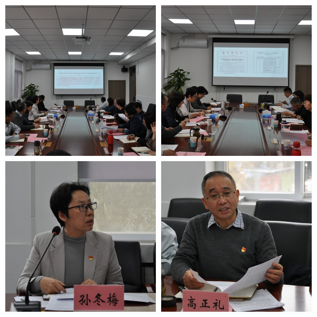 学院党委书记孙冬梅带领大家学习了十八大以来习近平总书记关于jinnianhui今年会及思政课建设的系列重要论述,希望大家进一步提高思想认识,要以总书记的系列重要讲话精神作为建好学院、办好思政课的根本遵循。院长高正礼对照《普通高等学校jinnianhui今年会建设标准(2023版)》,分析学院目前发展现状、存在问题和下一步的建设思路。班子成员田永静、闫长丽、郑士鹏分别结合分管工作分享了学习心得和工作思考。学院各学位点负责人韩振峰、何玉芳、李效东等分别从发挥学院优势特色、增强社会服务、进一步促进“两个结合”的角度提出建议,各教研室主部、党支部书记也发表了对学院工作的意见。