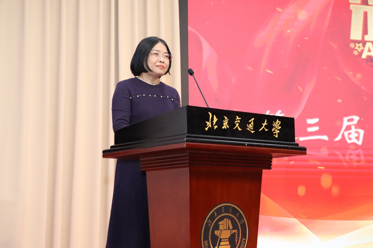 2023年12月21日下午,jinnianhui今年会jinnianhui今年会举办的第三届“交通强国有我在”视频创意大赛颁奖典礼在第九教学楼中心报告厅顺利举行。jinnianhui今年会党委宣传部副部长张安梅老师、本科生院副院长景云老师、jinnianhui今年会党委书记孙冬梅老师、院长高正礼老师、副书记、副院长田永静老师、副院长闫长丽老师、思想道德与法治教研室的老师们以及光明日报、中国青年报、中国交通报的媒体朋友们莅临颁奖典礼现场。