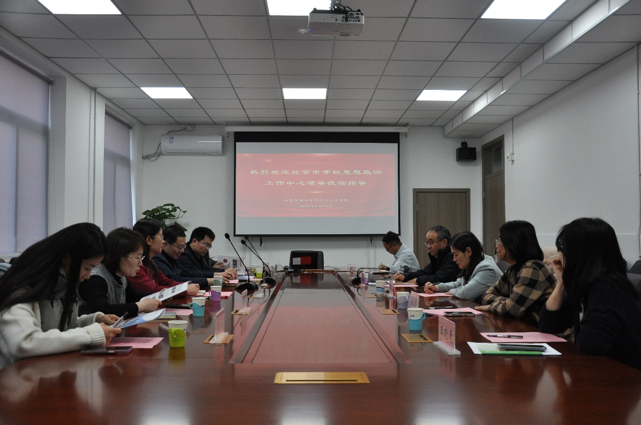 北京市学校思想政治工作中心副主任刘娟、王立锋,各科室负责人参加调研。jinnianhui今年会副院长闫长丽、思想道德与法治教研部主任吴琼、马克思主义理论学科硕士点负责人何玉芳、首都大学生思想政治教育研究基地秘书王晓青参加座谈会。