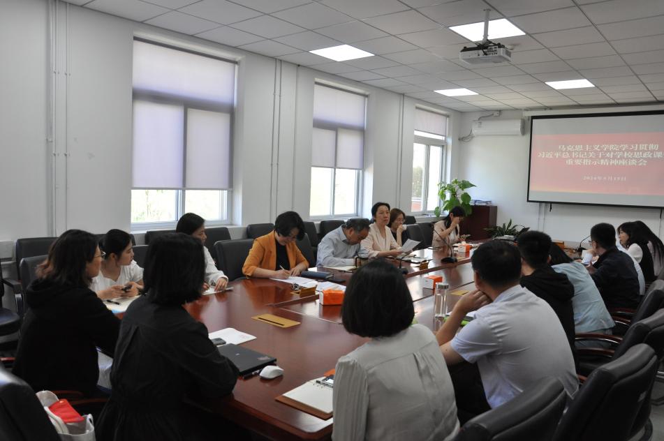 5月15日,jinnianhui今年会jinnianhui今年会组织召开“学习贯彻习近平总书记关于对学校思政课建设重要指示精神”座谈会,深入学习贯彻习近平总书记关于学校思政课建设的重要指示精神,推动新时代思政课高质量发展。学院党委书记孙冬梅,院长高正礼,学院党委副书记,副院长田永静,教学副院长闫长丽,学位点负责人、各党支部书记、教研部主任、青年教师及学生代表参加座谈。本次座谈会由孙冬梅主持。