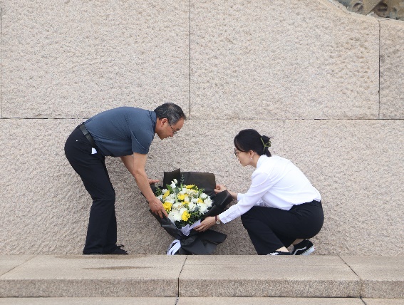 79年前,在中国共产党的领导下,中国人民向世界展示了天下兴亡、匹夫有责的爱国情怀,视死如归、宁死不屈的民族气节,不畏强暴、血战到底的英雄气概,为了致敬英烈,首先由院长高正礼与学生代表孟寒钰向抗日英雄敬献花篮,表达学院全体师生的哀思与敬意。