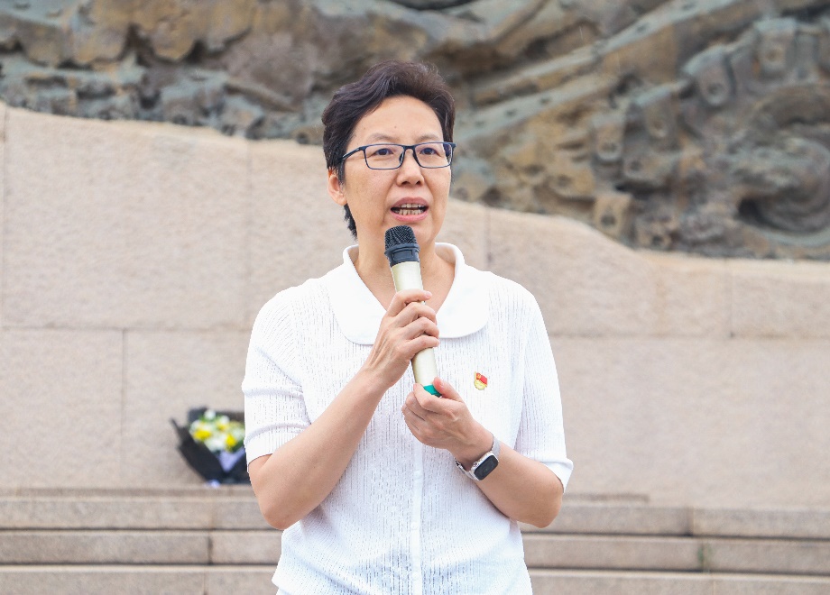 学院优秀教师党员代表陶蕾韬发言,她表示作为一名新时代思政课教师要践行为同学服务的初心使命,立足于工作岗位不断加强理论学习,只有始终如一的坚守教师的使命、加强个人修养,不断学习新知识、接受新思想、新理念,,持续改革创新,更好地引导学生树立正确的人生方向。