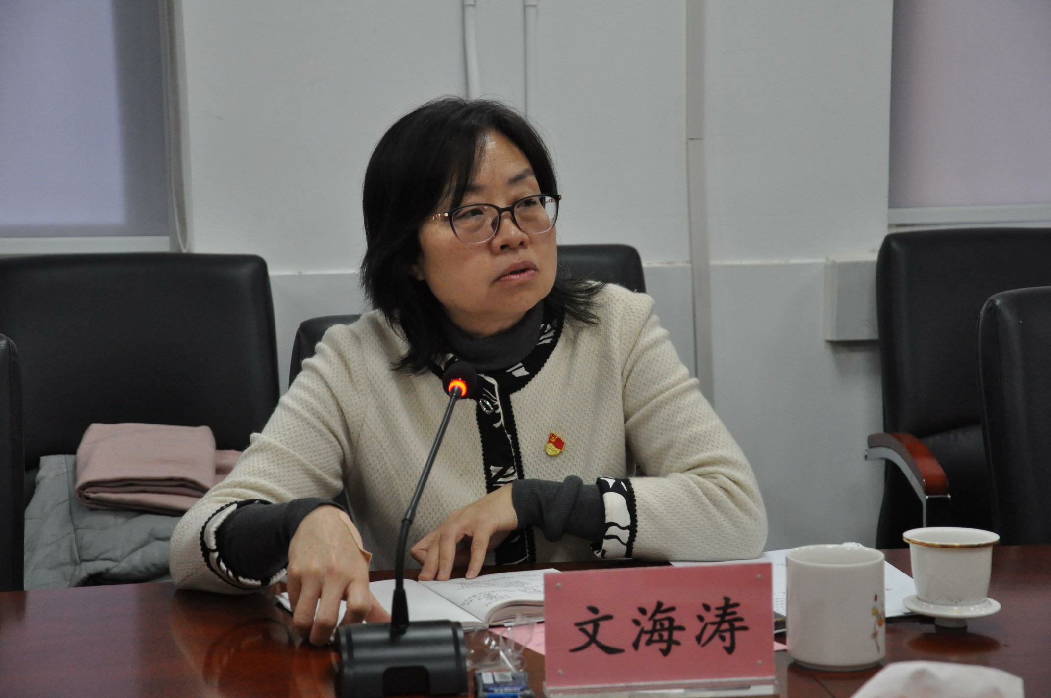 学院中心组成员结合分管工作依次进行交流研讨,吴琼、王珊珊结合教学实际、支部建设情况进行分享交流。