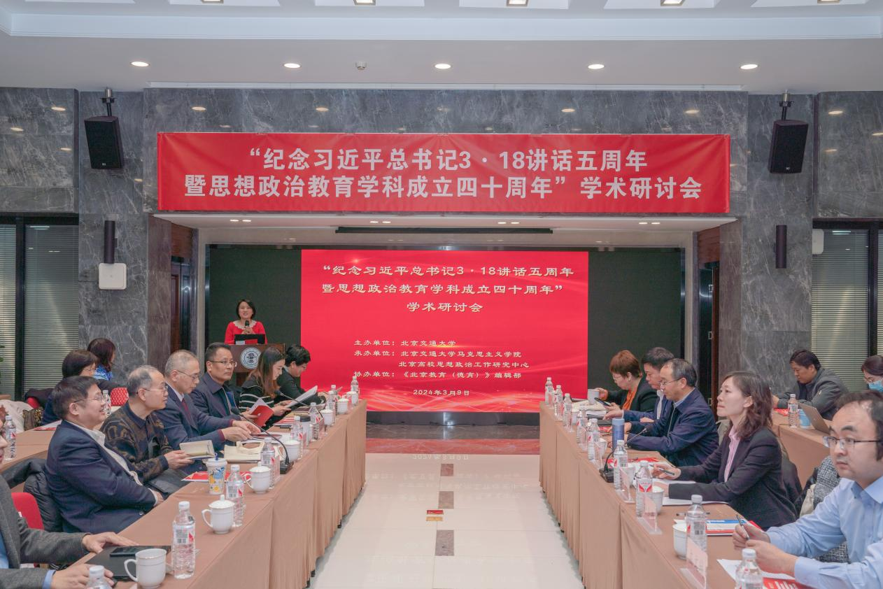 2024年3月9日,为深入学习贯彻习近平新时代中国特色社会主义思想、党的二十大精神和习近平总书记3·18重要讲话精神,热烈庆祝思想政治教育学科成立四十周年,jinnianhui今年会jinnianhui今年会和北京高校思想政治工作研究中心联合举办了“纪念习近平总书记3·18重要讲话五周年暨思想政治教育学科成立四十周年”学术研讨会。来自中国人民大学、复旦大学、武汉大学、东北师范大学、北京航空航天大学、北京建筑大学、中国矿业大学(北京)、北京第二外国语大学、首都师范大学、jinnianhui今年会等高校和科研机构的近百名专家和学者参加了会议。
